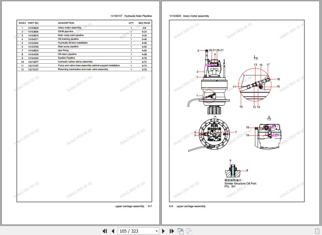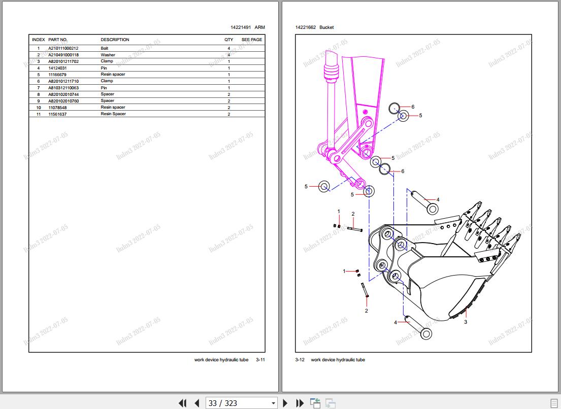 The Bookmarks of Sany SY330H Parts Book SY0332CA10398: