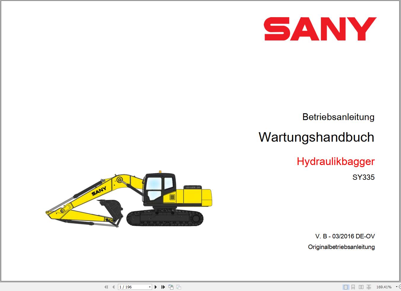 Sany SY335 Electrical and Hydraulic Schematic Maintenance Manual 534654