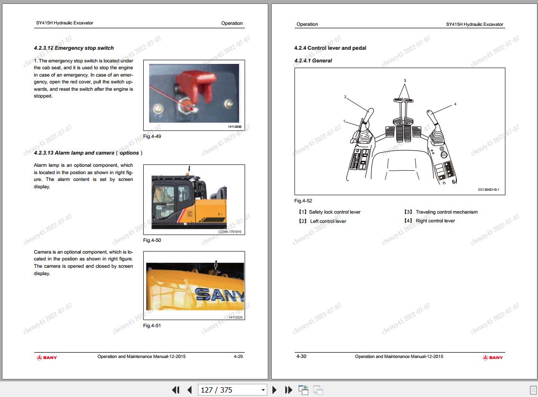 The Bookmarks of Sany SY415H Operation and Maintenance Manual: