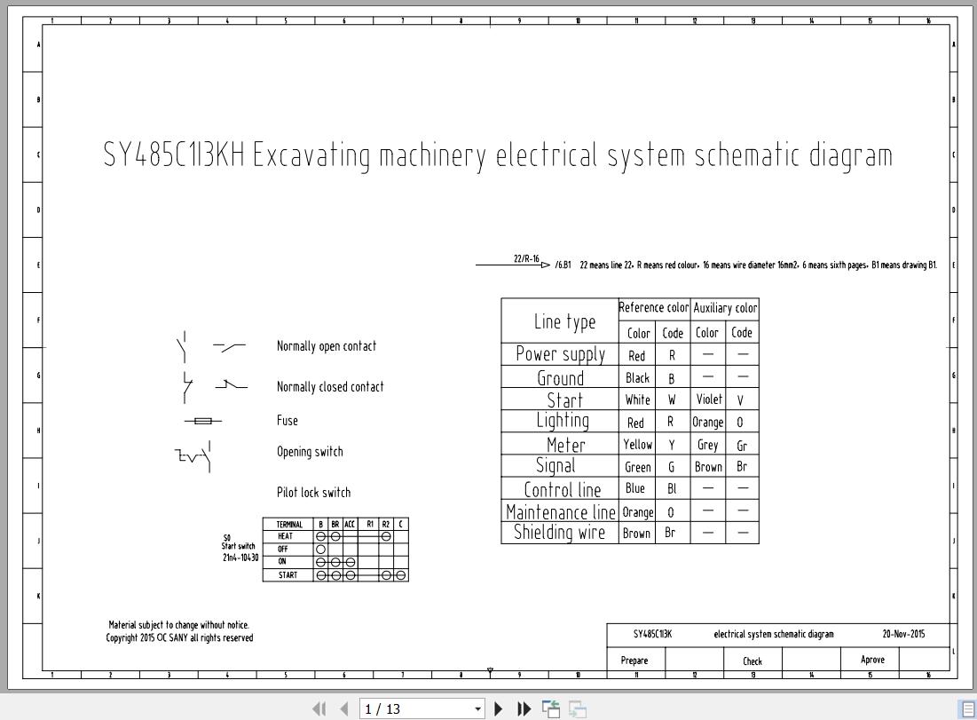 Sany SY485C1I3KH Electrical Schematic 13 Pages