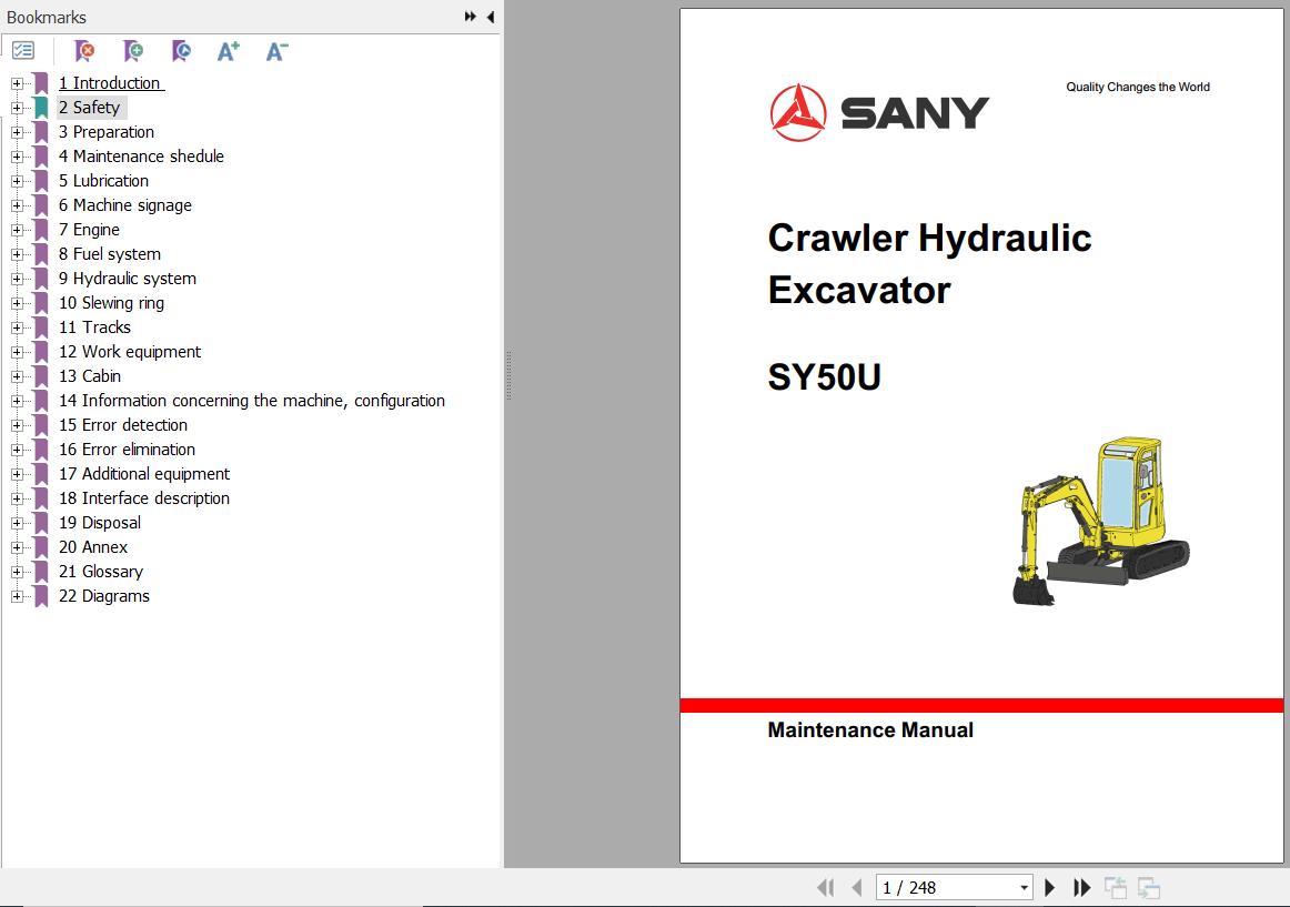 The Bookmarks of Sany SY50U Maintenance Manual Electrical and Hydraulic Circuit Diagram:
