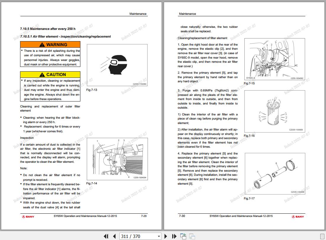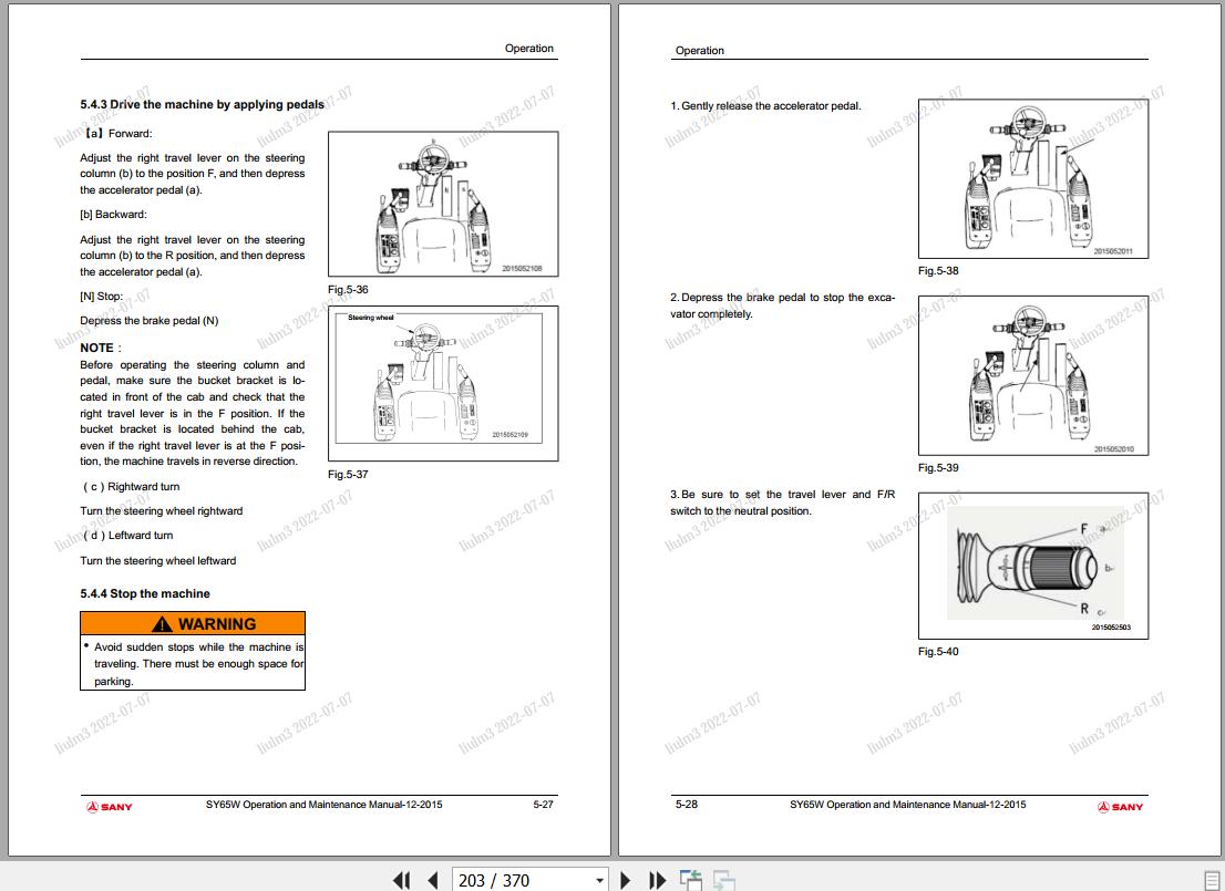 The Bookmarks of Sany SY65W Operation and Maintenance Manual: