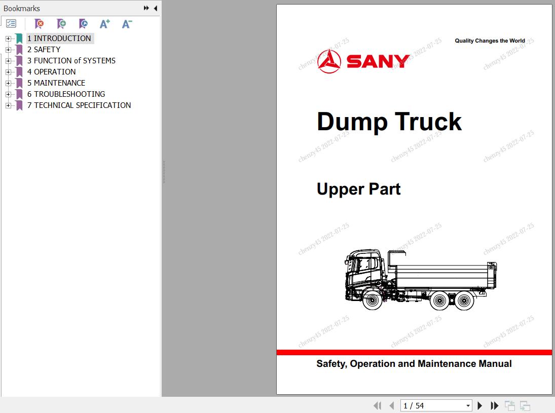 The Bookmarks of Sany SYM3250ZZX1E Upper Part Operation and Maintenance Manual: