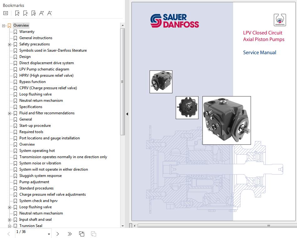 Sauer Danfoss LPV Closed Circuit Axial Piston Pumps Service Manual 917452