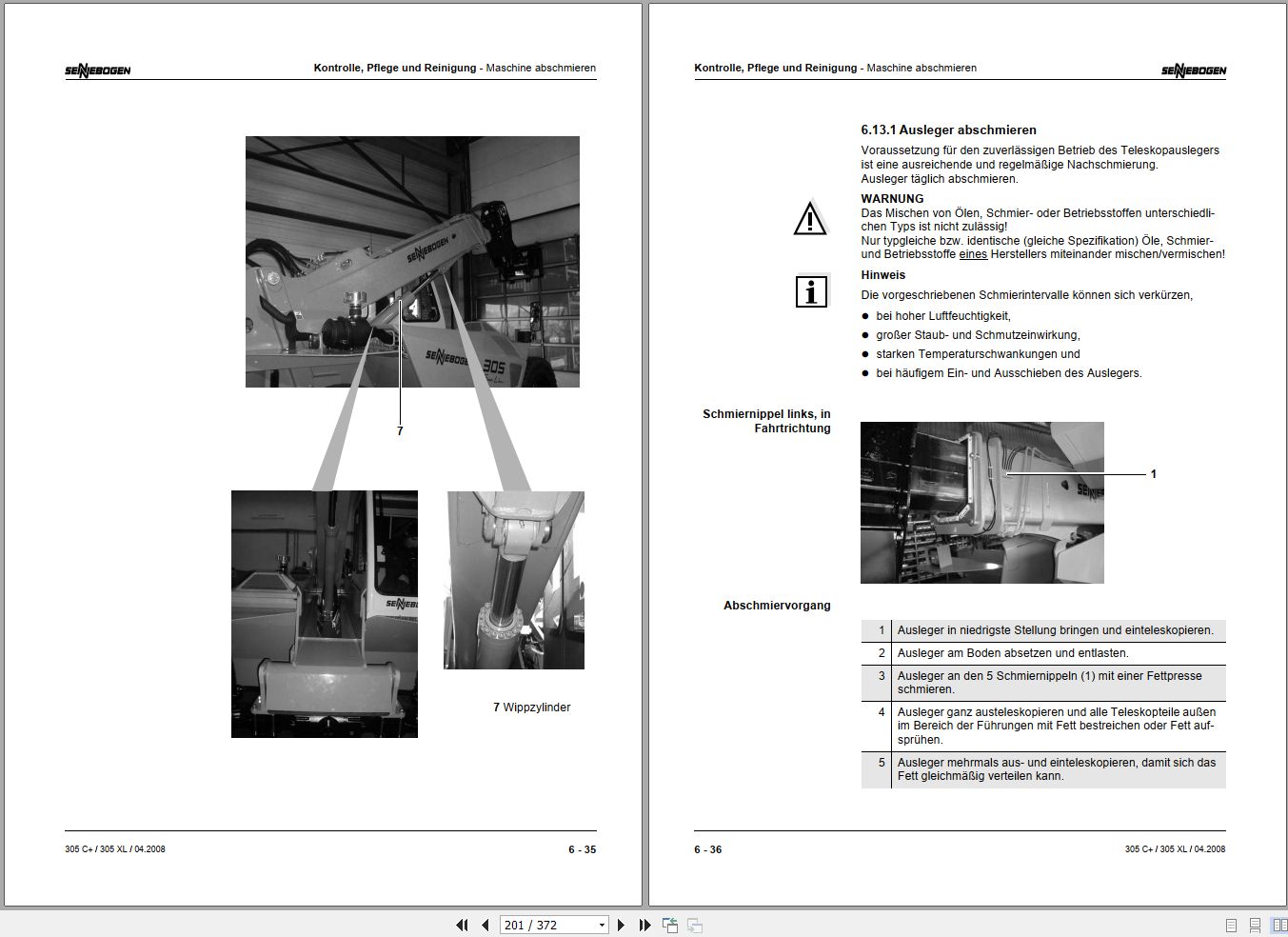 Sennebogen 305 C+ 305 XL 305.0.425 Operating and Maintenance Instructions DE