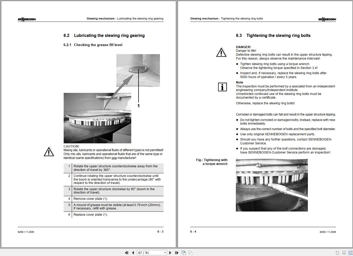 Sennebogen 825 D 825.0.1061 Maintenance Instructions
