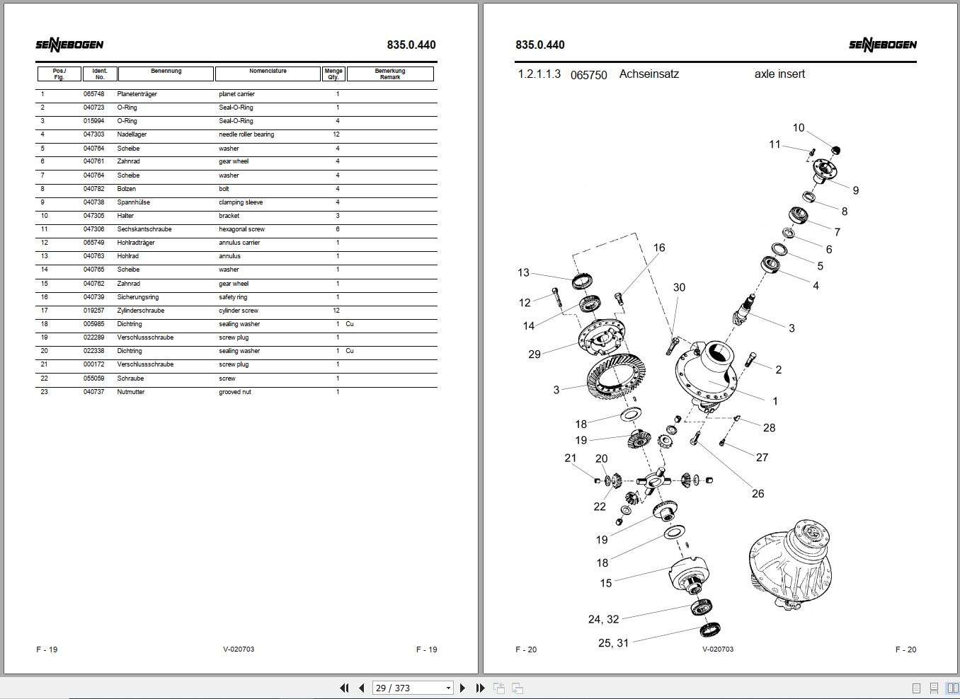 Sennebogen 835 835.0.611 Spare Parts List