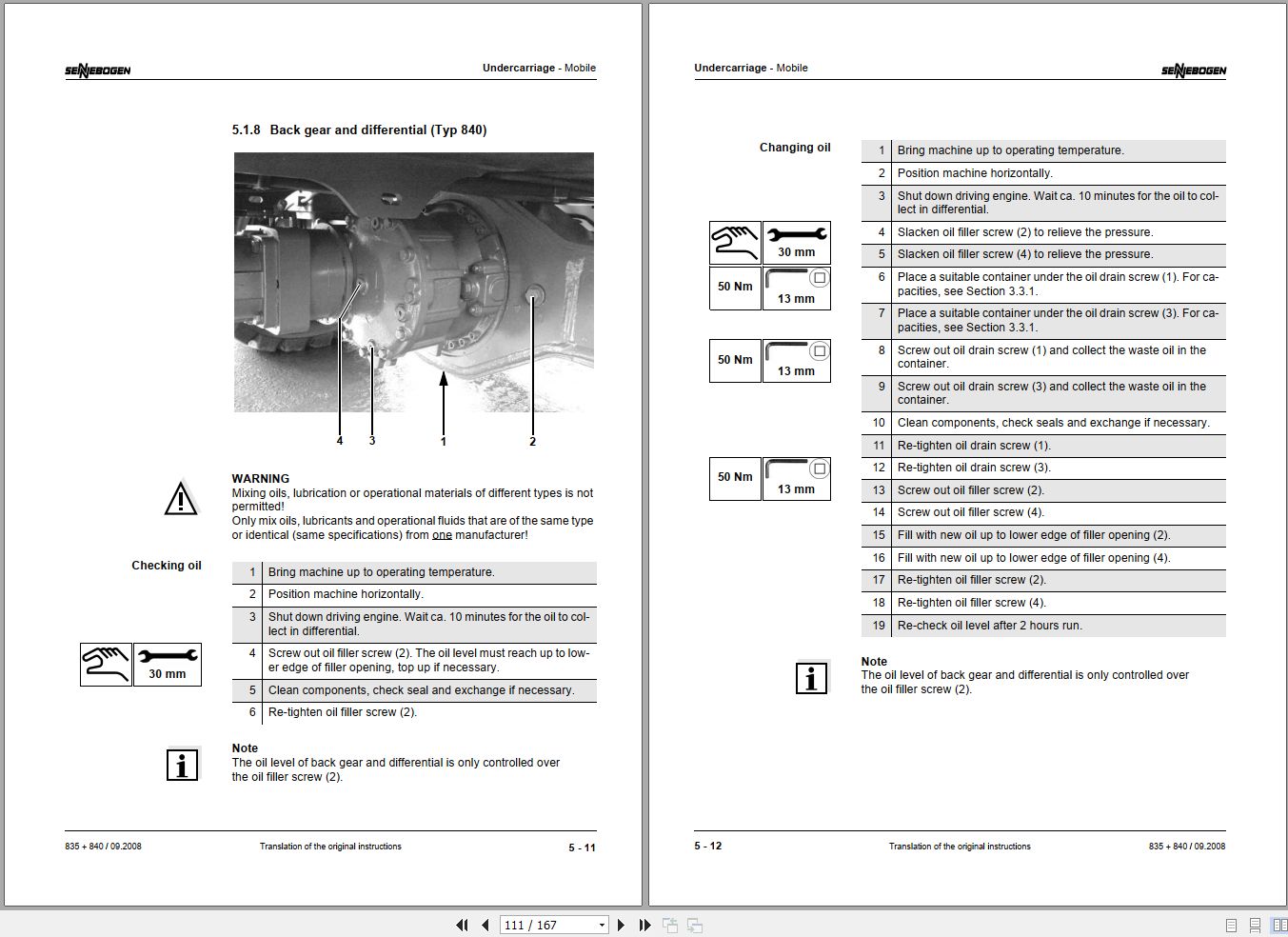 Sennebogen 835 840 835.0.1147 Maintenance Instructions