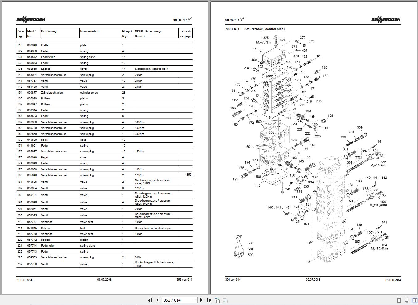 Sennebogen 850 850.0.284 Spare Parts List