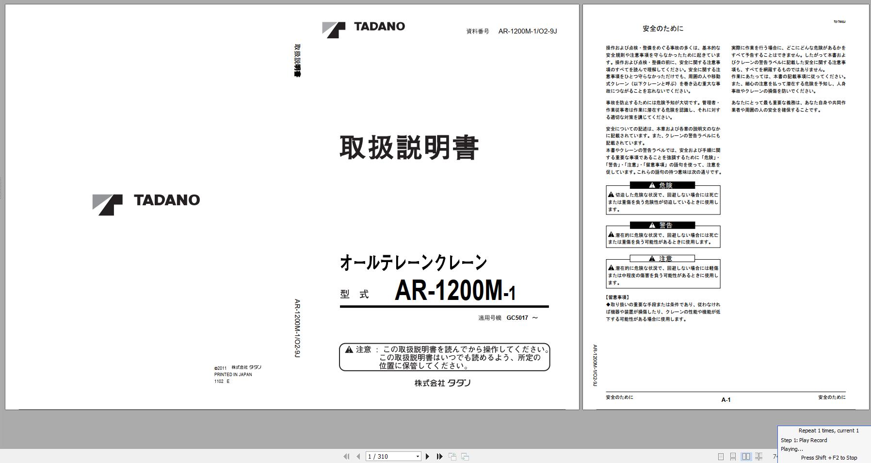 Tadano AR-1200M-1 Operation Manual AR-1200M-1_O2-9J