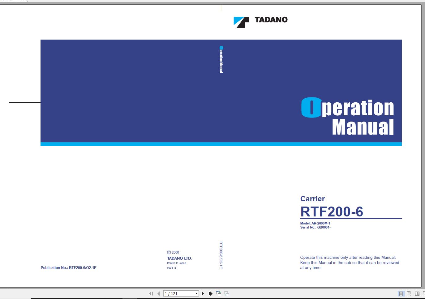 Tadano AR-1200M-1 Operation Manual RTF200-6_O2-1E
