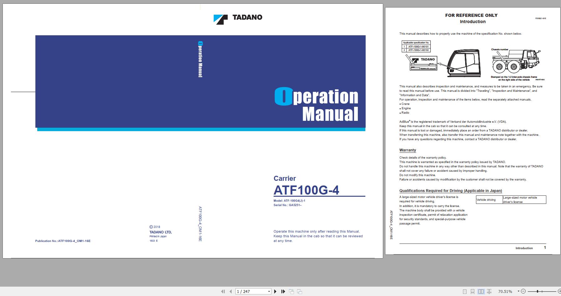 Tadano ATF-100G4(J)-1 Operation Manual OM1-17J