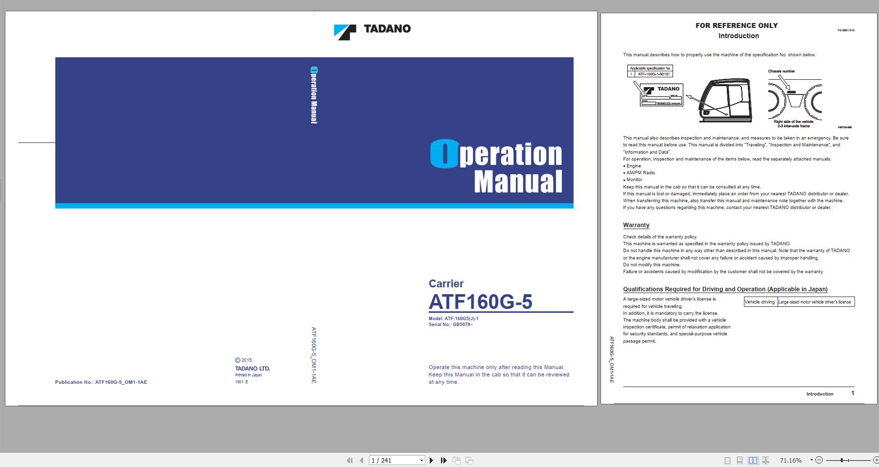 Tadano ATF-160G5(J)-1 Operation Manual ATF160G-5_OM1-1AE