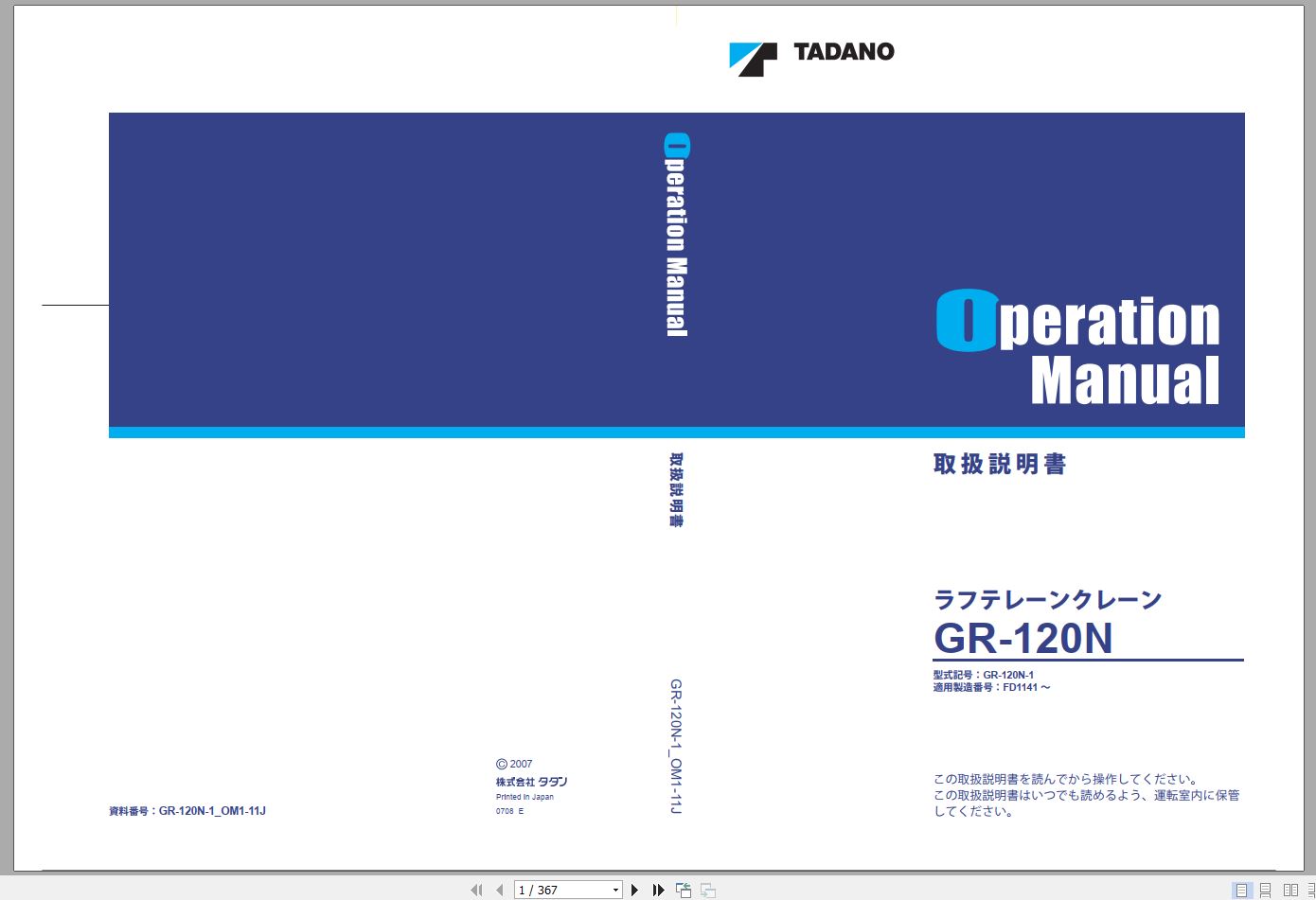 Tadano GR-120N-1 Operation Manual GR-120N-1_OM1-11J