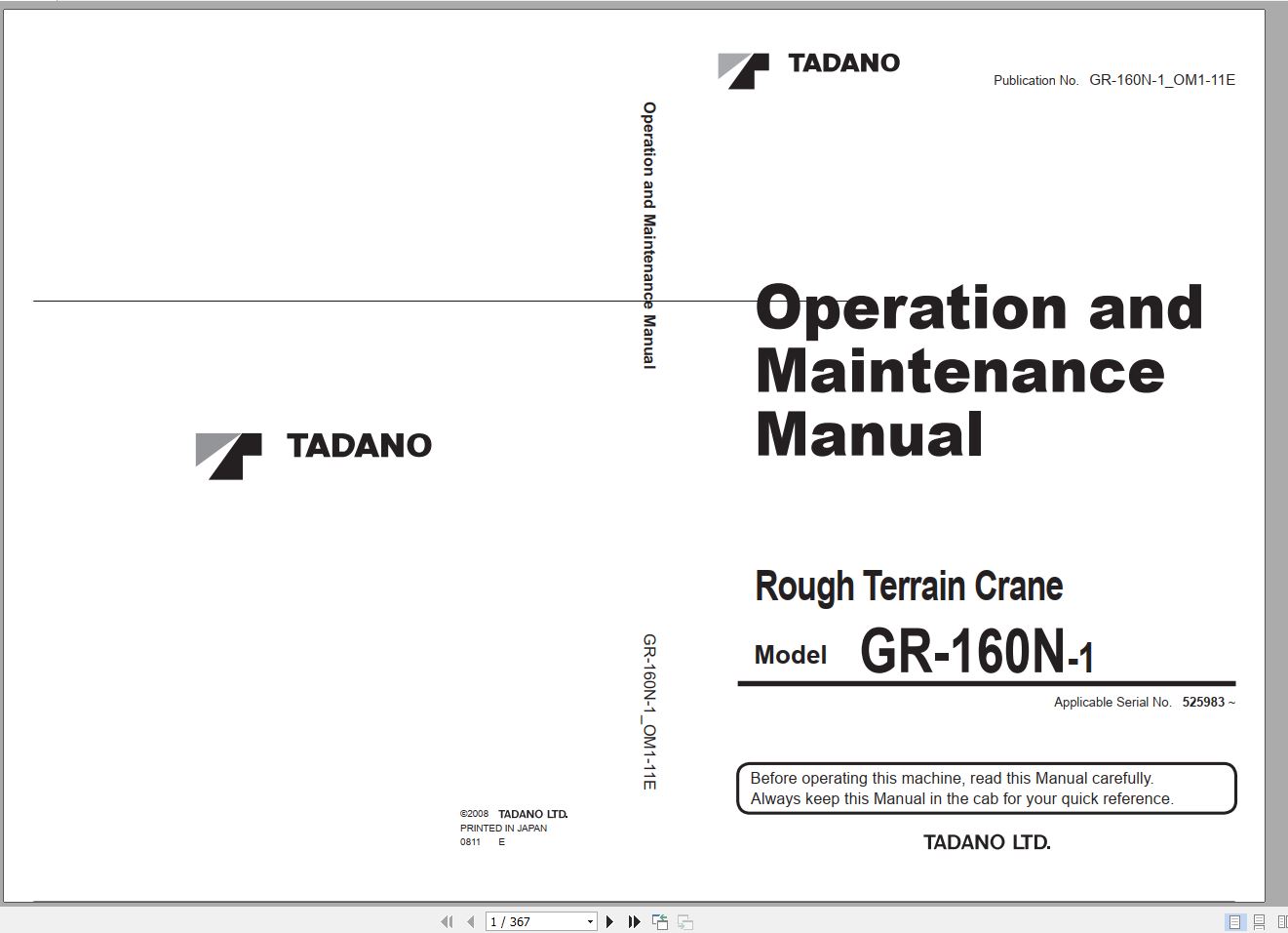 Tadano GR-160N-1 Operation Manual GR-160N-1_OM1-11E