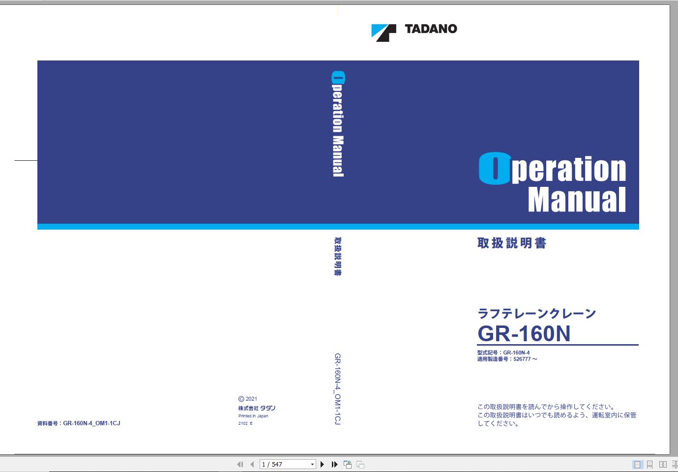 Tadano GR-160N-4 Operation Manual GR-160N-4_OM1-1CJ