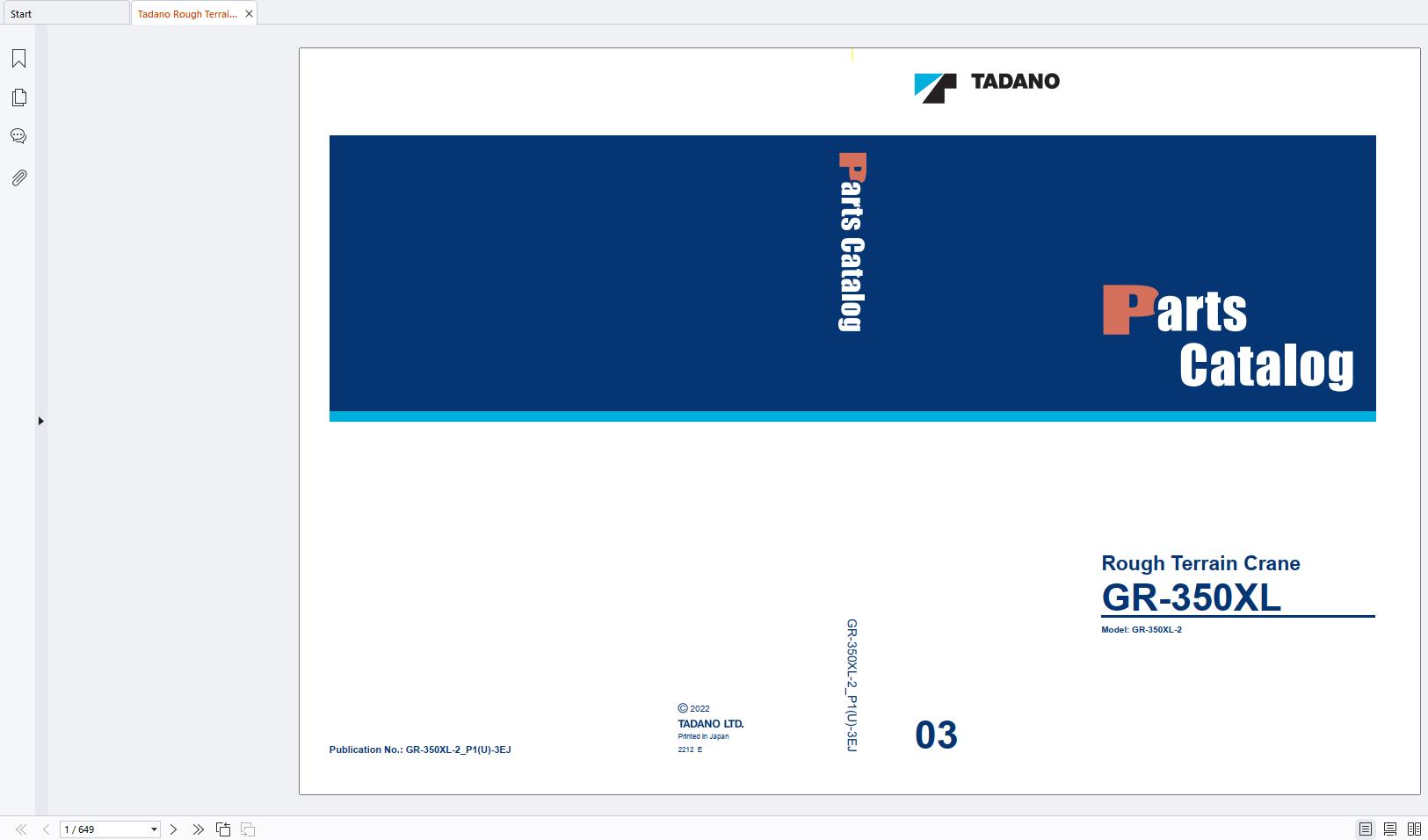 Tadano GR-350-2 GR-350XL-2 Parts Catalog GR-350XL-2_P1(U)-3EJ