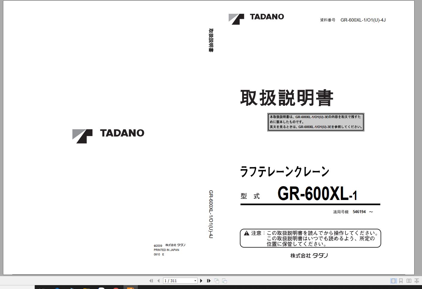 Tadano GR-600XL-1 Operation Manual GR-600XL-1_O1(U)-4J