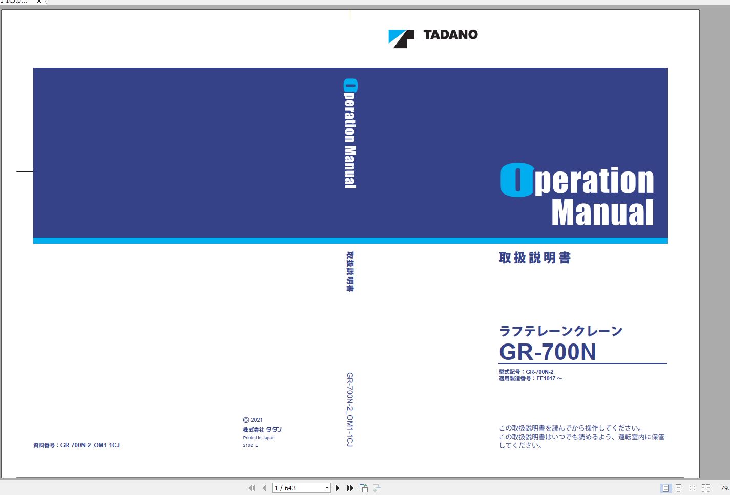 Tadano GR-700N-2 Operation Manual GR-700N-2_OM1-1CJ