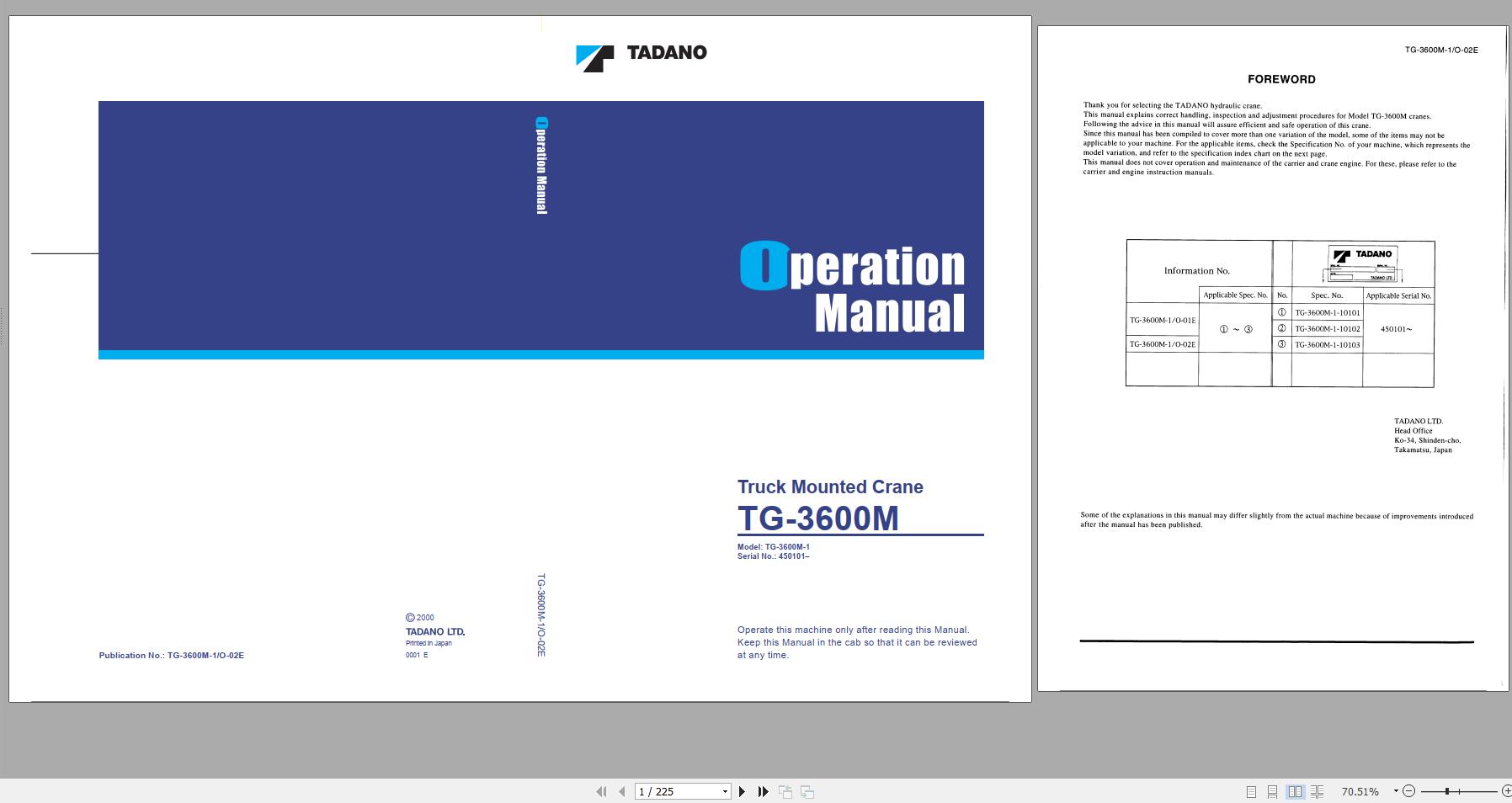 Tadano TG-3600M-1 Operation Manual TG-3600M-1_O-02E