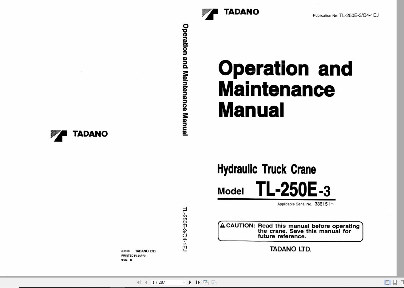 Tadano TL-250E-3 Operation Manual TL-250E-3_O4-1EJ