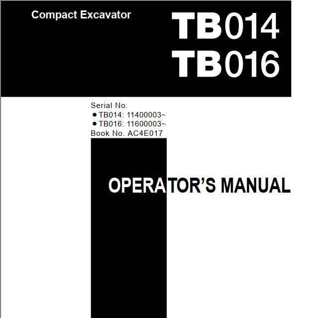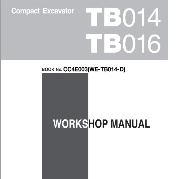 Takeuchi TB014 TB016 Workshop Operators Parts Manual