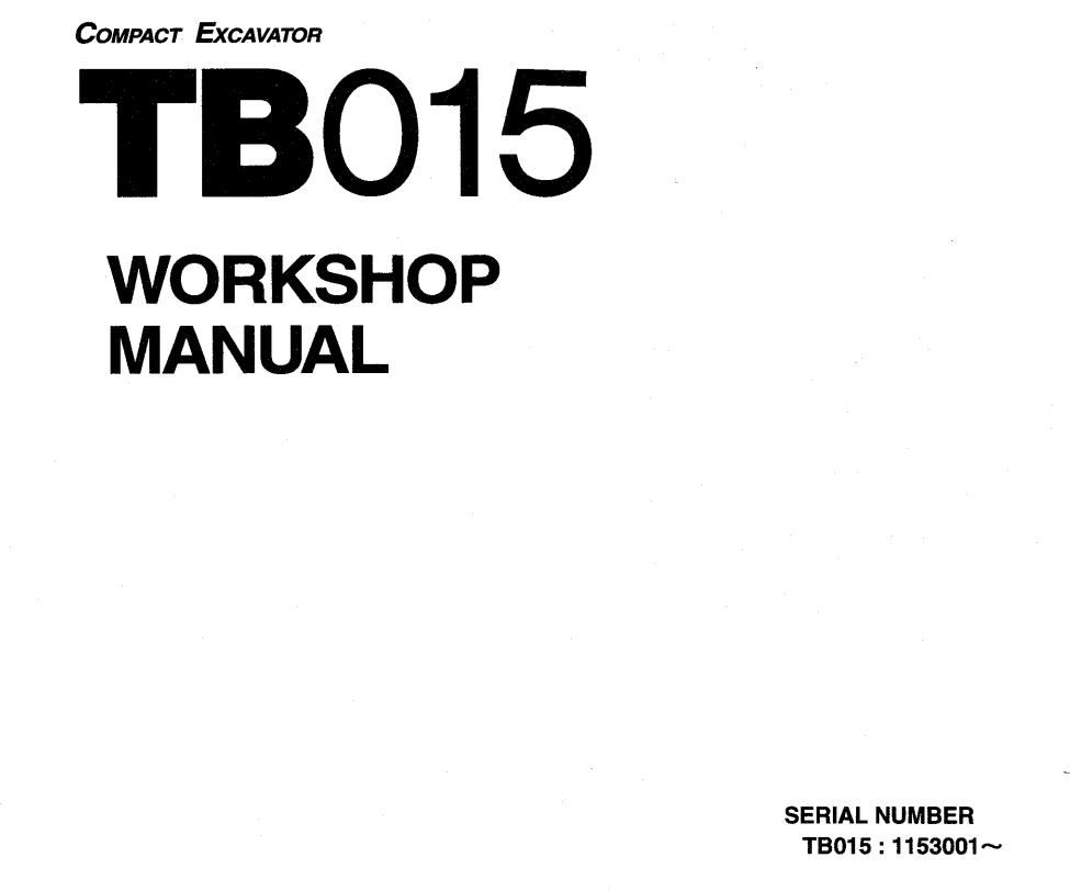 Takeuchi TB015 Workshop Operators Parts Manual