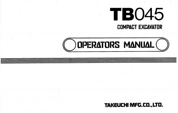 Takeuchi TB045 Parts Workshop Operators Manual