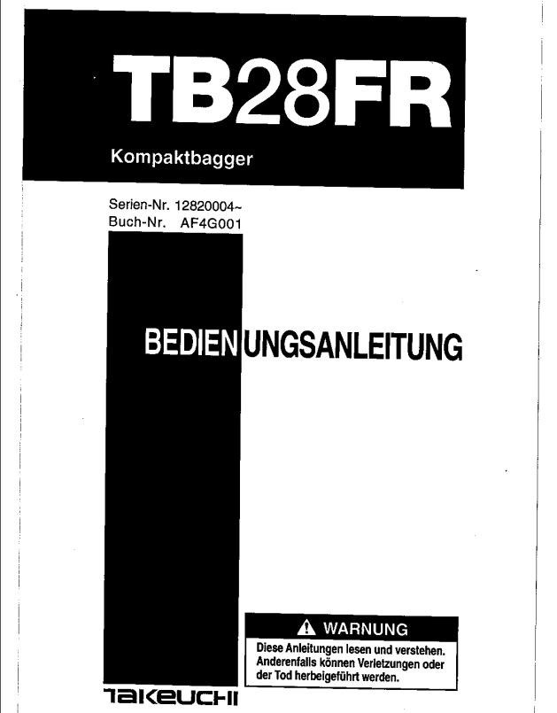 Takeuchi TB28FR Parts Workshop Operators Manual