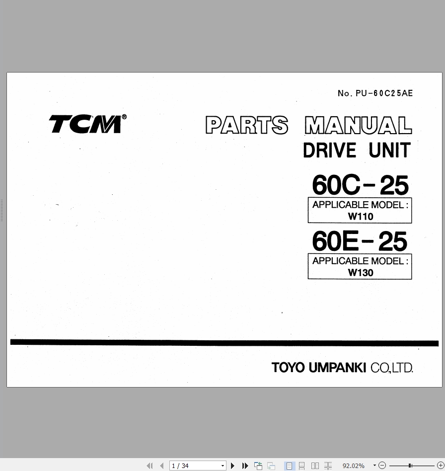 TCM 60C-25 60E-25 Parts Manual PU-60C25AE