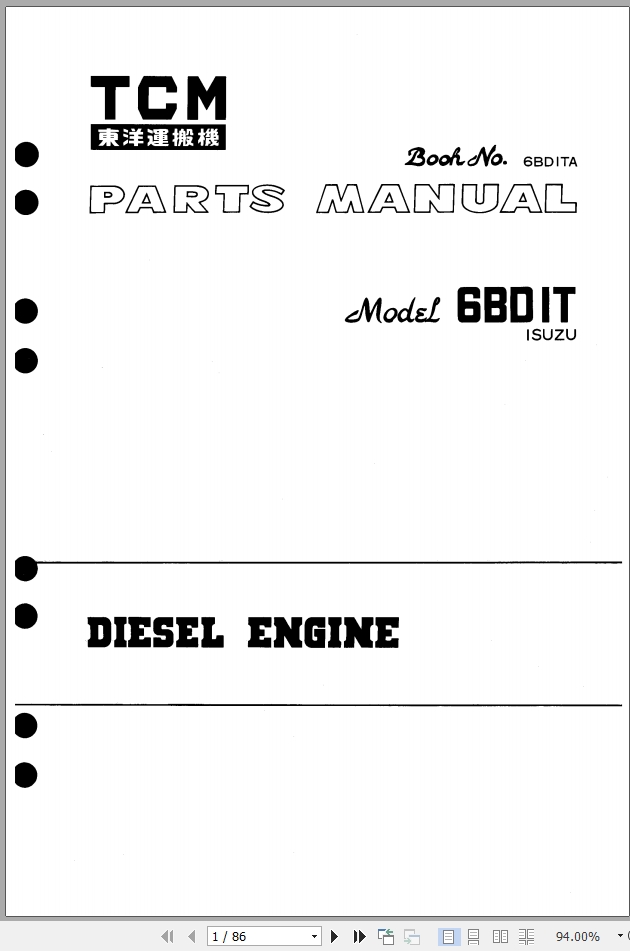 TCM 6BDIT Isuzu Parts Manual 6BDITA