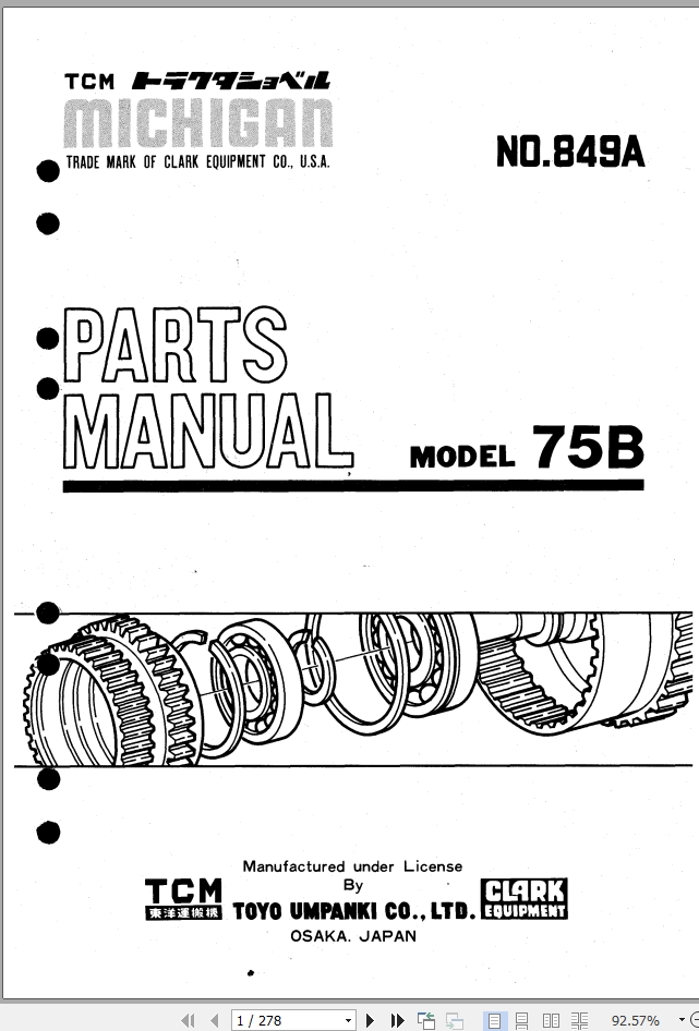 TCM 75B Parts Manual 849ASize: 7.7 MBMachine: Wheel LoaderMachine Model: 75BPublication Date: 1976Page: 278 PagesBook No: 849A