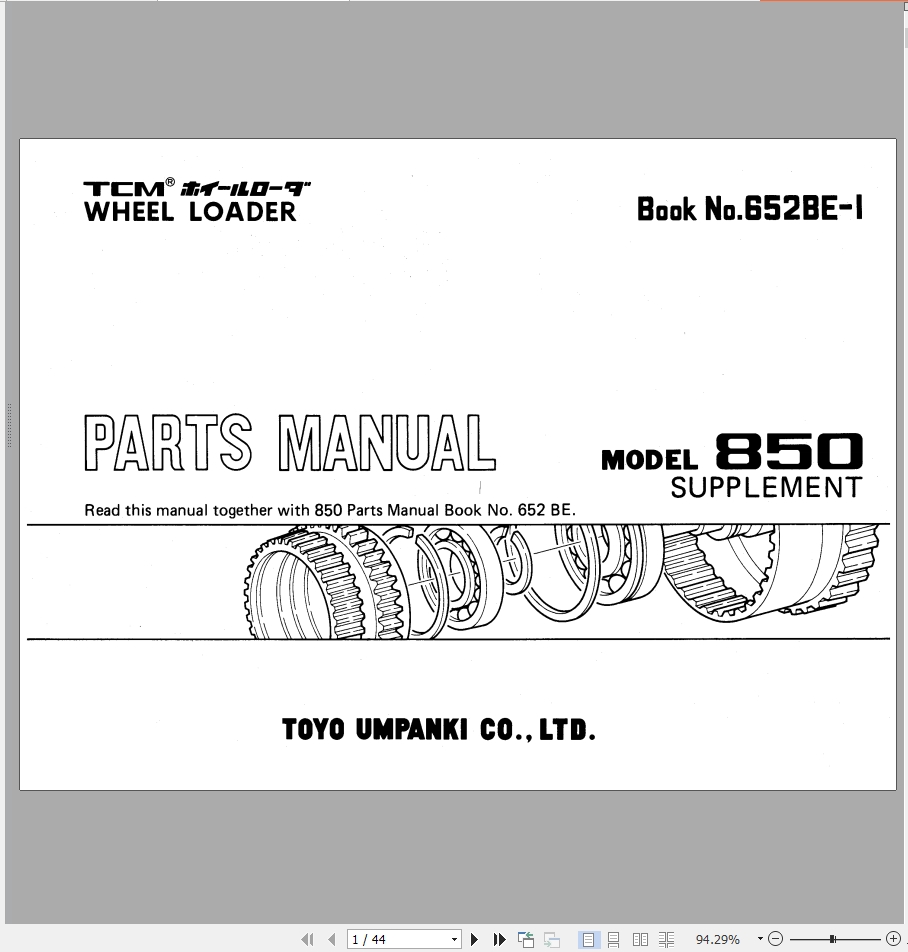 TCM 850 Parts Manual 652BE-1Size: 1.4 MBMachine: Wheel LoaderMachine Model: 850Publication Date: 1986Page: 44 PagesBook No: 652BE-1