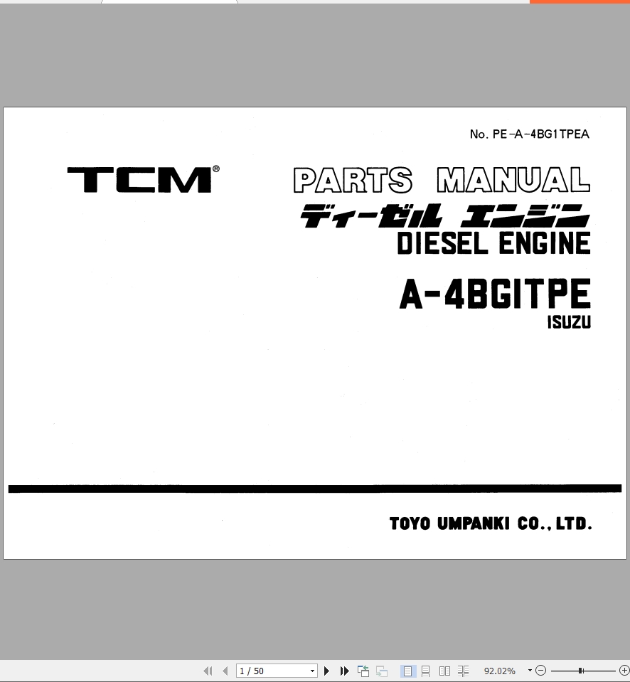 TCM A-4BG1TPE Isuzu Parts Manual PE-A-4BG1TPEA
