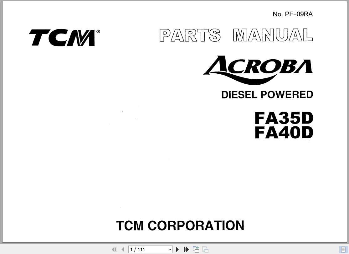 TCM Acroba FA35D FA40D Parts Manual PF-09RA