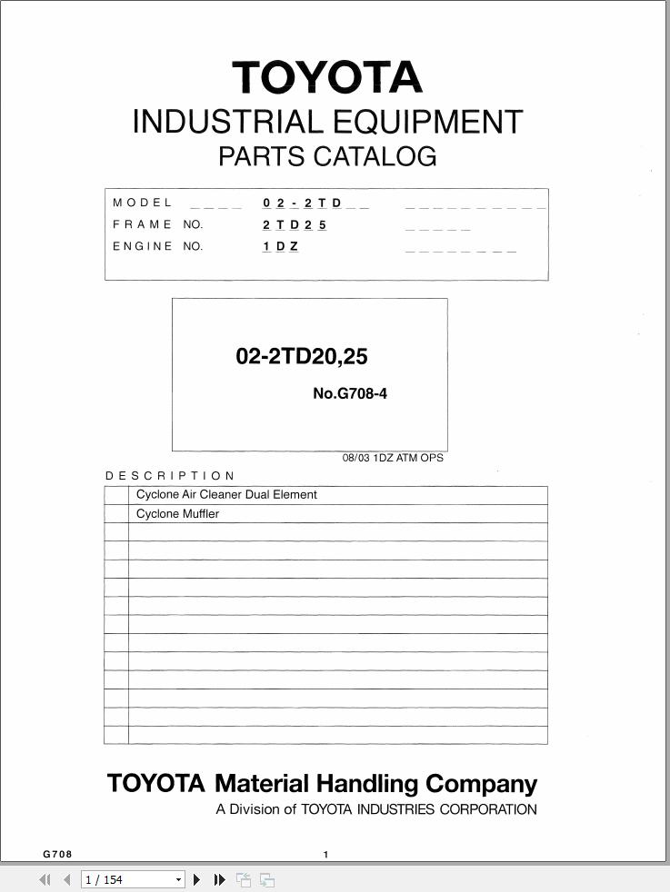 Toyota 02-2TD20 02-2TD25 Parts Catalog G708-4