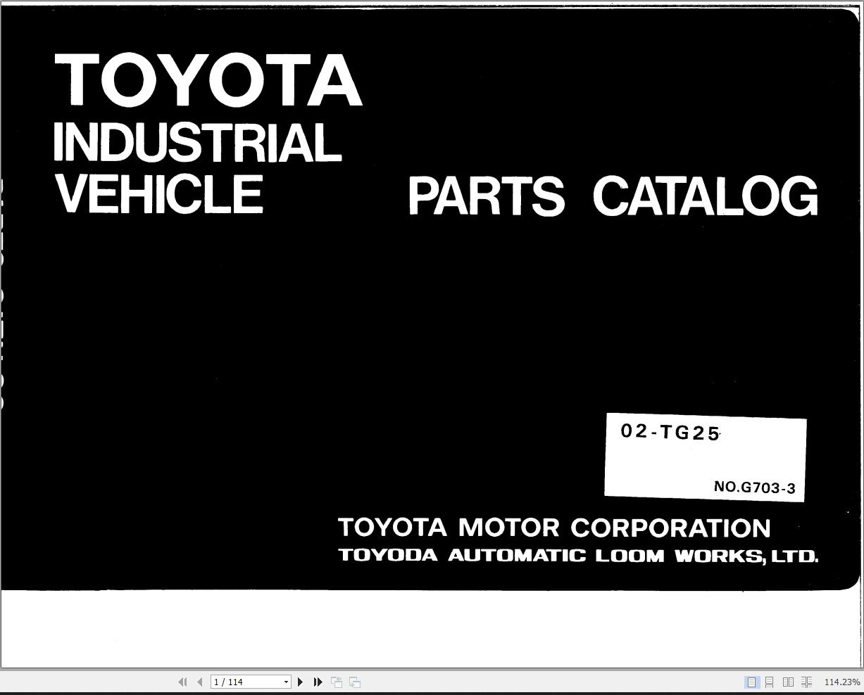 The Bookmarks of Toyota 02-TG25 Parts Catalog: