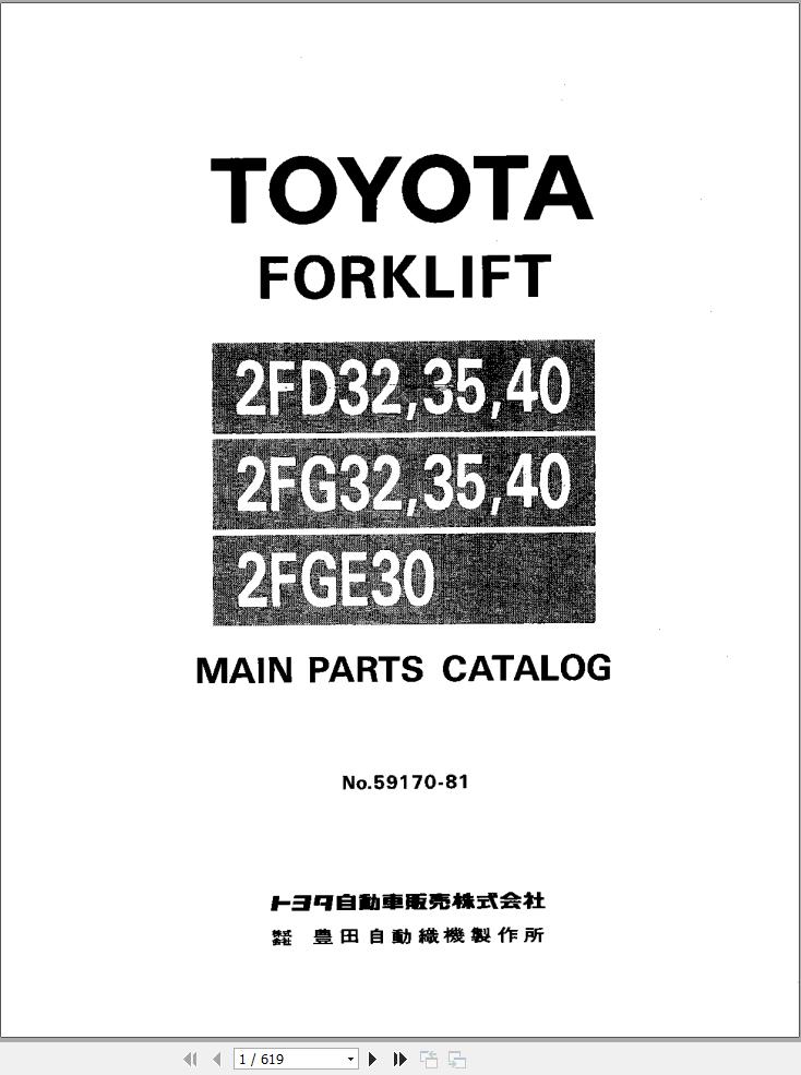 Toyota 2FD32 to 2FD40, 2FG32 to 2FG40, 2FGE30 Parts Catalog 59170-81