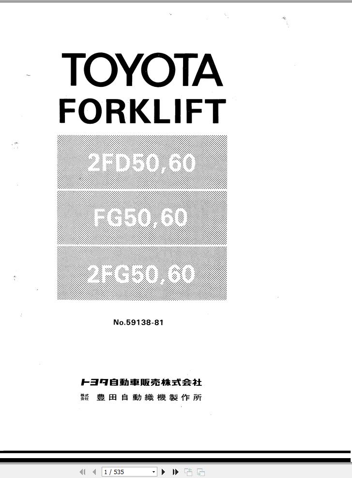 Toyota 2FD50 2FD60 FG50 FG60 2FG50 2FG60 Parts Catalog 59138-81
