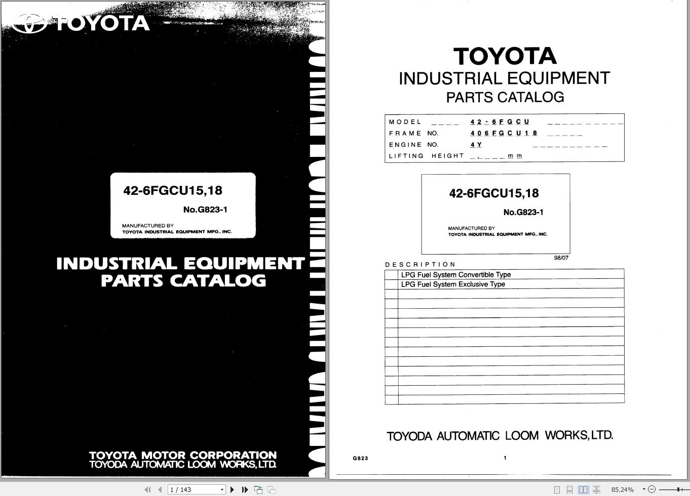 Toyota 42-6FGCU15 42-6FGCU18 Parts Catalog G823-1