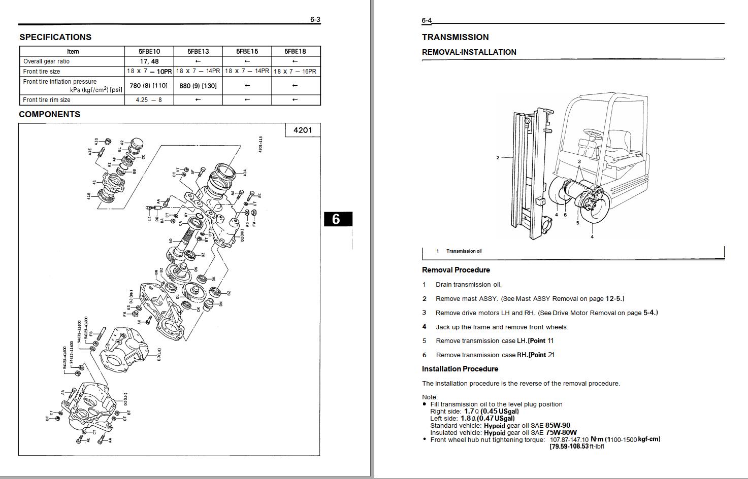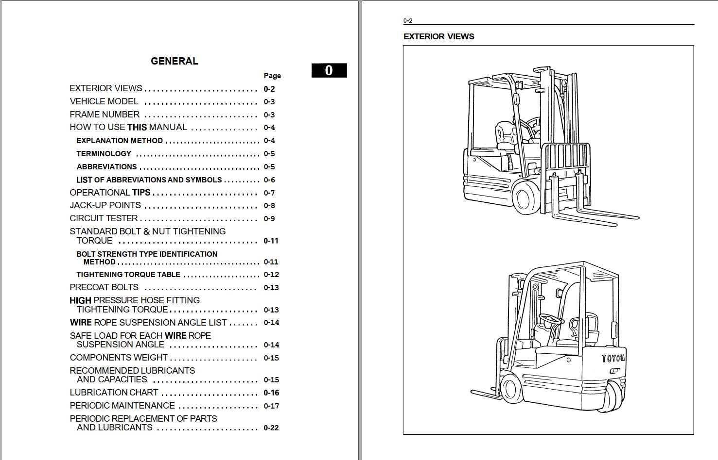 Toyota 5FBE10 to 5FBR20 Service Manual & Parts Catalog