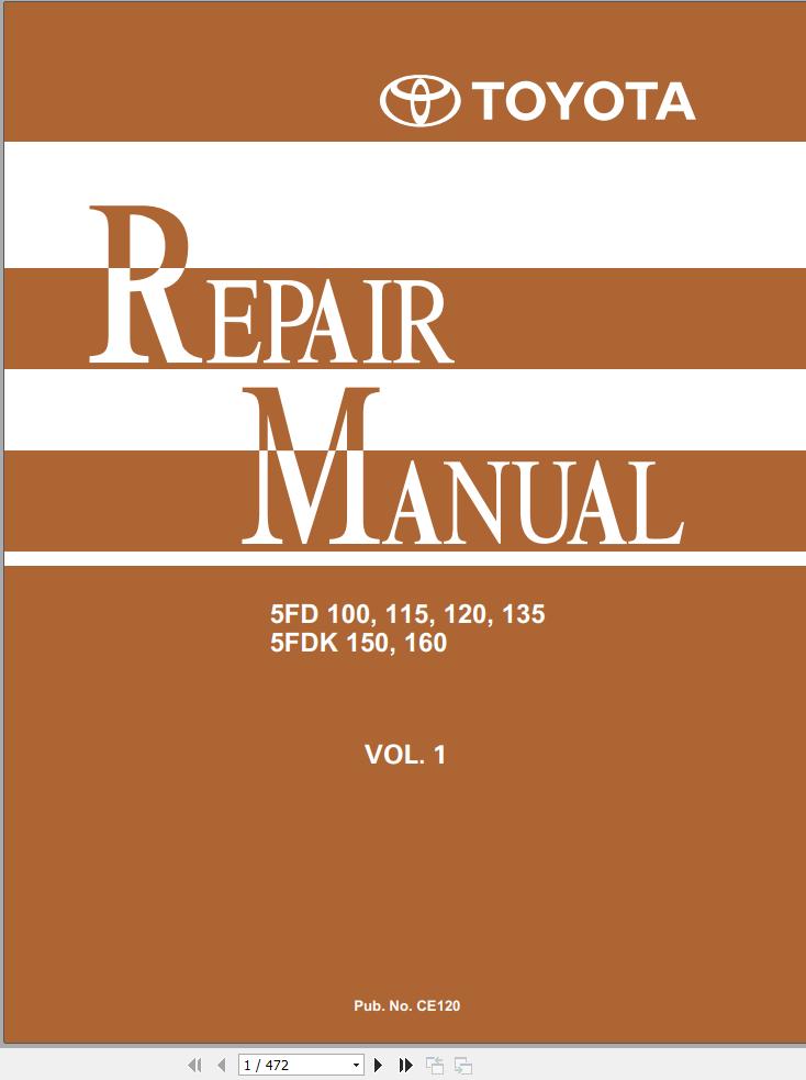 Toyota 5FD100 to 5FD135, 5FDK150 5FDK160 Repair Manual CE120 Vol. 1 (472 pages)