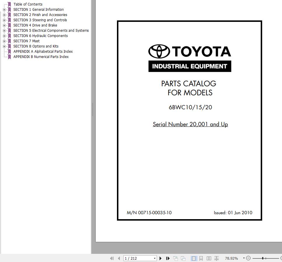 Toyota 6BWC10 6BWC15 6BWC20 Parts Catalog (212 Pages)