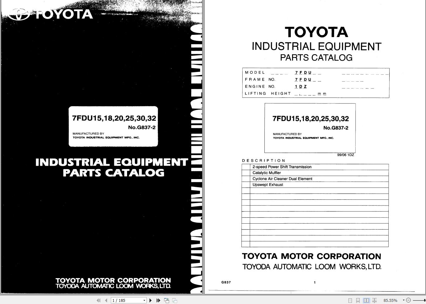 Toyota 7FDU15 to 7FDU32 Parts Catalog G837-2
