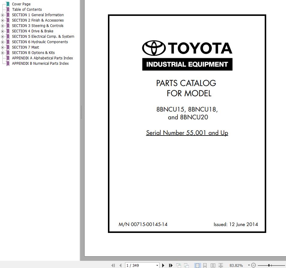 Toyota 8BNCU15 8BNCU18 8BNCU20 Parts Catalog