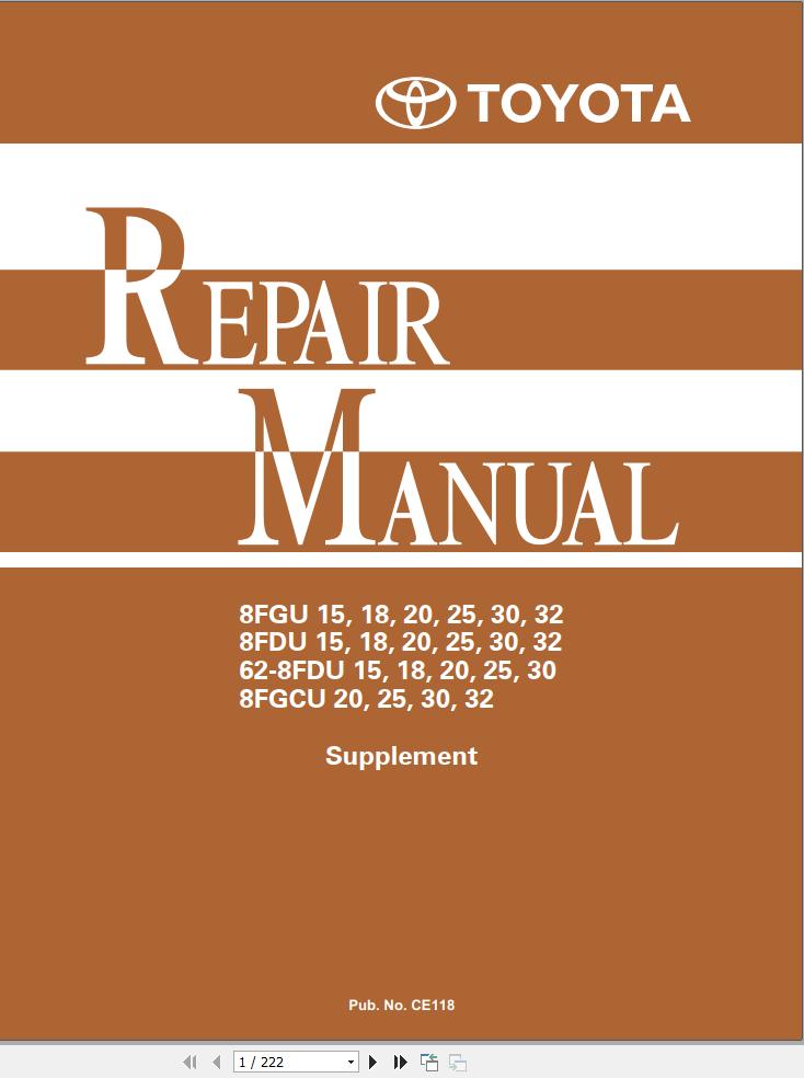Toyota 8FGU15 to 8FGCU32 Repair Manual & Parts Catalog