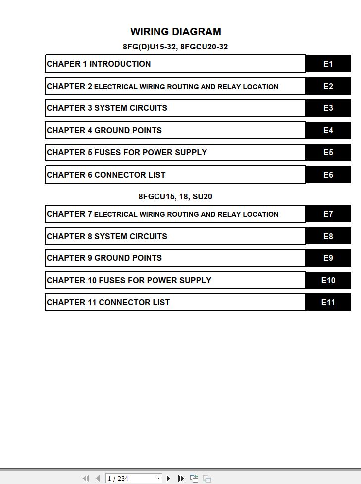 The Bookmarks of Toyota 8FGU15 to 8FGU32, 8FDU15 to 8FDU32, 8FGCU20 to 8FGCU32 Wiring Diagram: