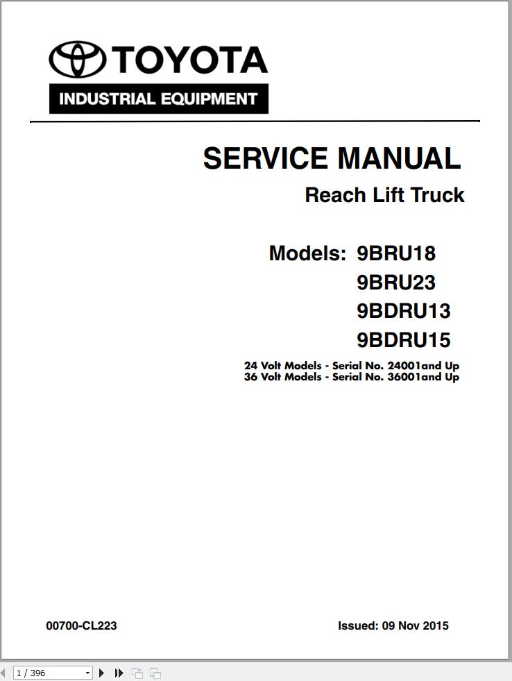 Toyota 9BRU18 9BRU23 9BDRU13 9BDRU15 Service Manual 00700-CL223