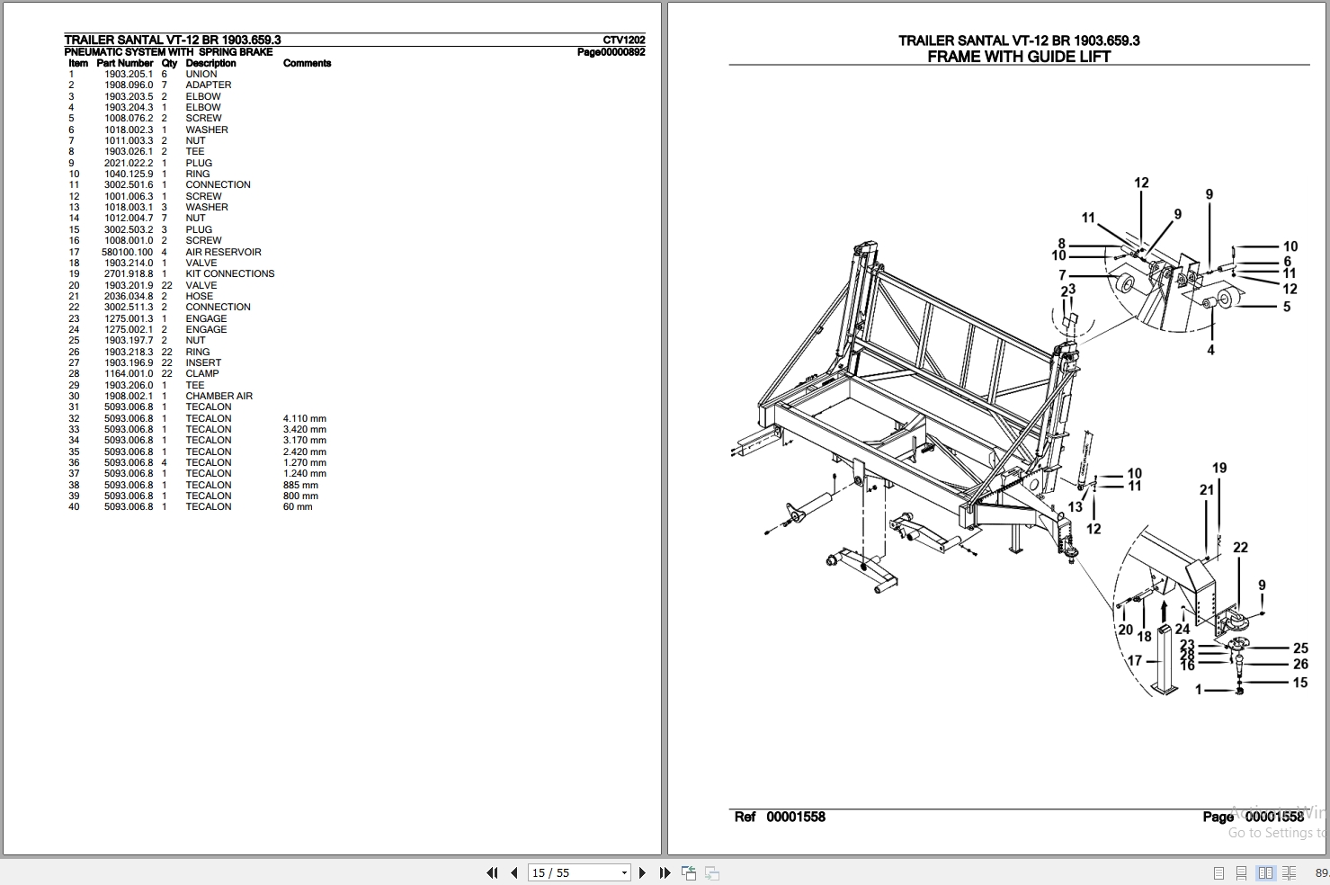 Valtra Trailer Santal VT-12 BR Parts Catalog PDF CTV1202 Data Size: 2.04 MB File Type: PDF Language: English Manufacturer: Valtra Applicable Machine: Material Handling, Trailer Document: Parts Catalog Machine Model: Valtra Santal VT-12 BR Trailer Serial Number: 1903.659.3 Page: 55 Pages List Contents: Elevator Frame Lifting And Cesto Transmission Spring Brake Wheel Assy Brake Master Pneumatic System With Spring Brake Frame With Guide Lift Conjunto Tandem - A Partir Da Série 2014v0679 Conjunto Eixo Com Freio - A Partir Da Série 2014v0679 Hydraulic System Lifting Hydraulic Cylinder Tilting Hydraulic Cylinder Hydraulic Pump Command 2 Elements Kit Lubrication Kit For Coupling Hydraulic Pump Syst. Hydr. Whit Valve 4 Way- Single Hydraulic Oil Reservoir Hydr.Syst. Independent For Pneumatic Control Kit Lubrificação Do Quadro A Partir Da Série 2015v000150 Kit Lubrificação Do Cesto A Partir Da Série 2015v000150 Electrical System