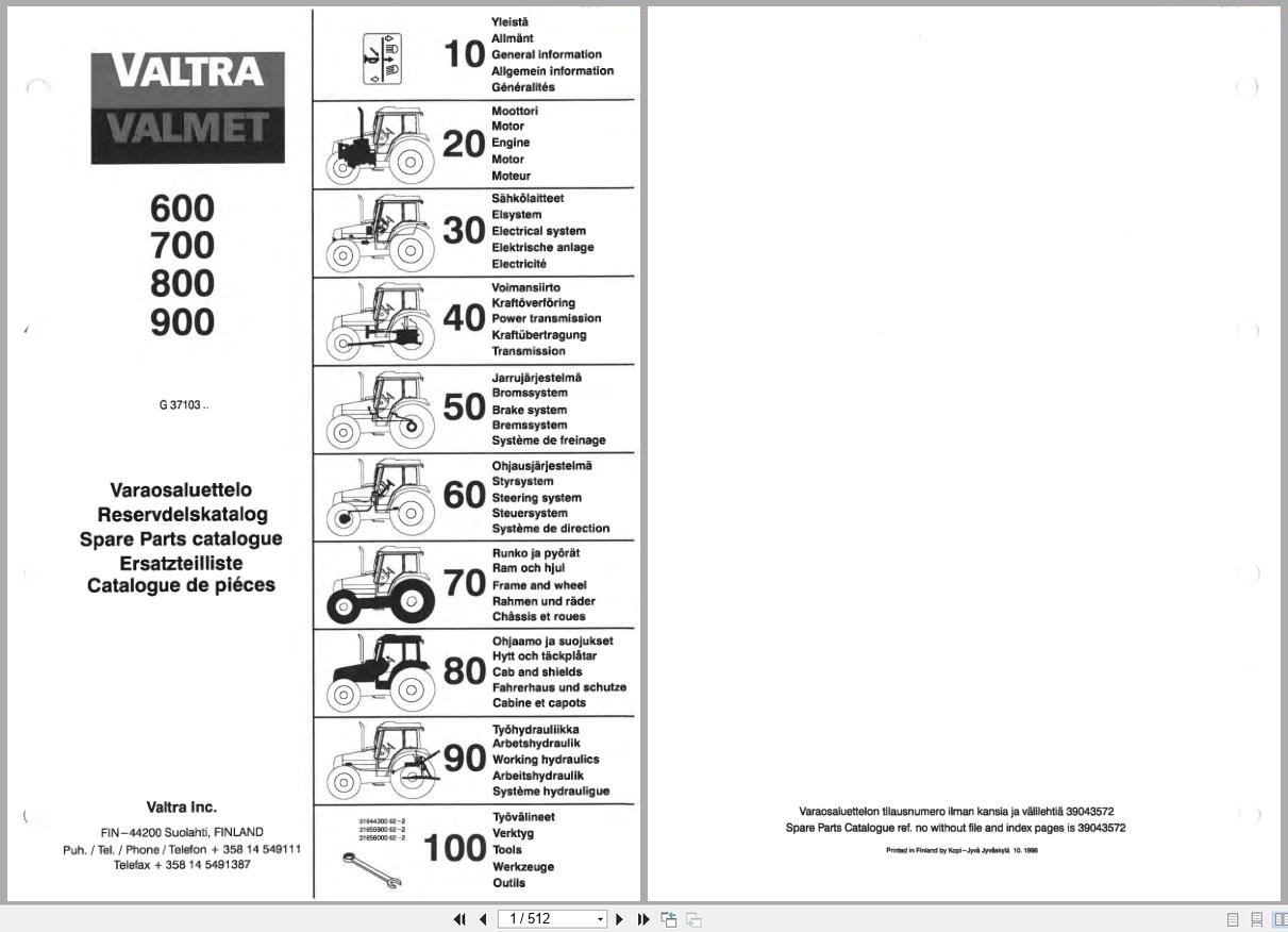 Valtra Valmet 600 700 800 900 Parts Catalog 39043572 EN SV FI DE
